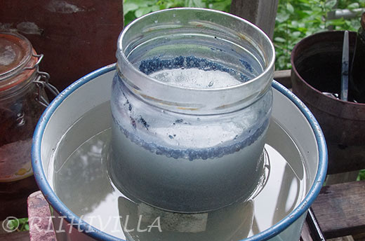 Yllä olevassa kuvassa purkkiin on lisätty kalkki ja indigo.